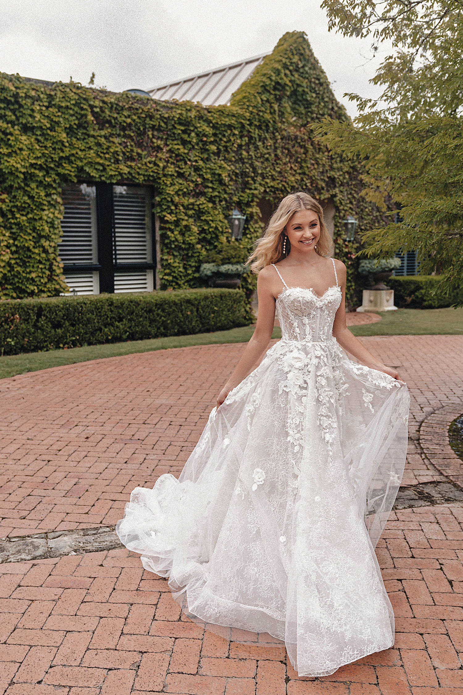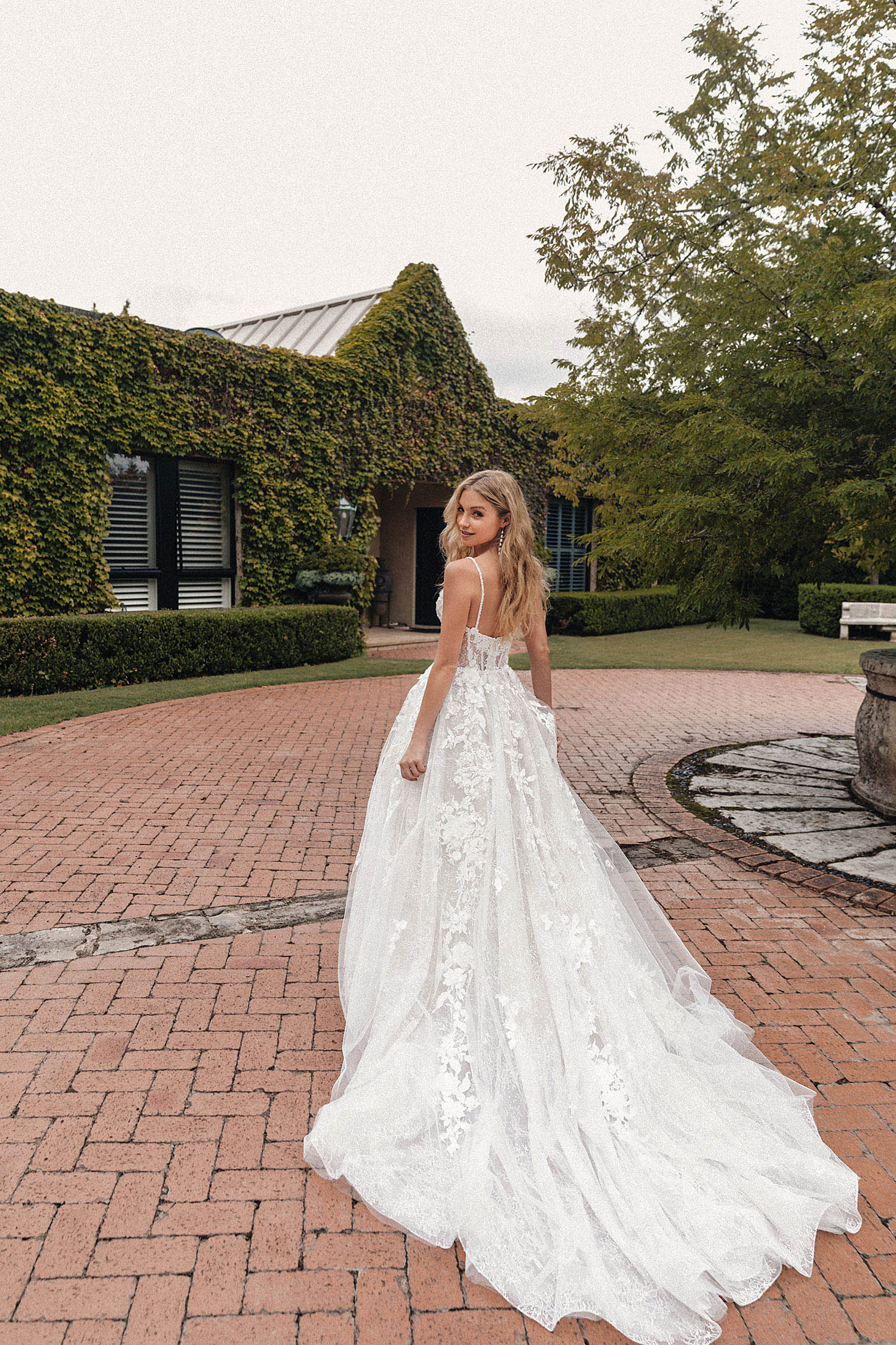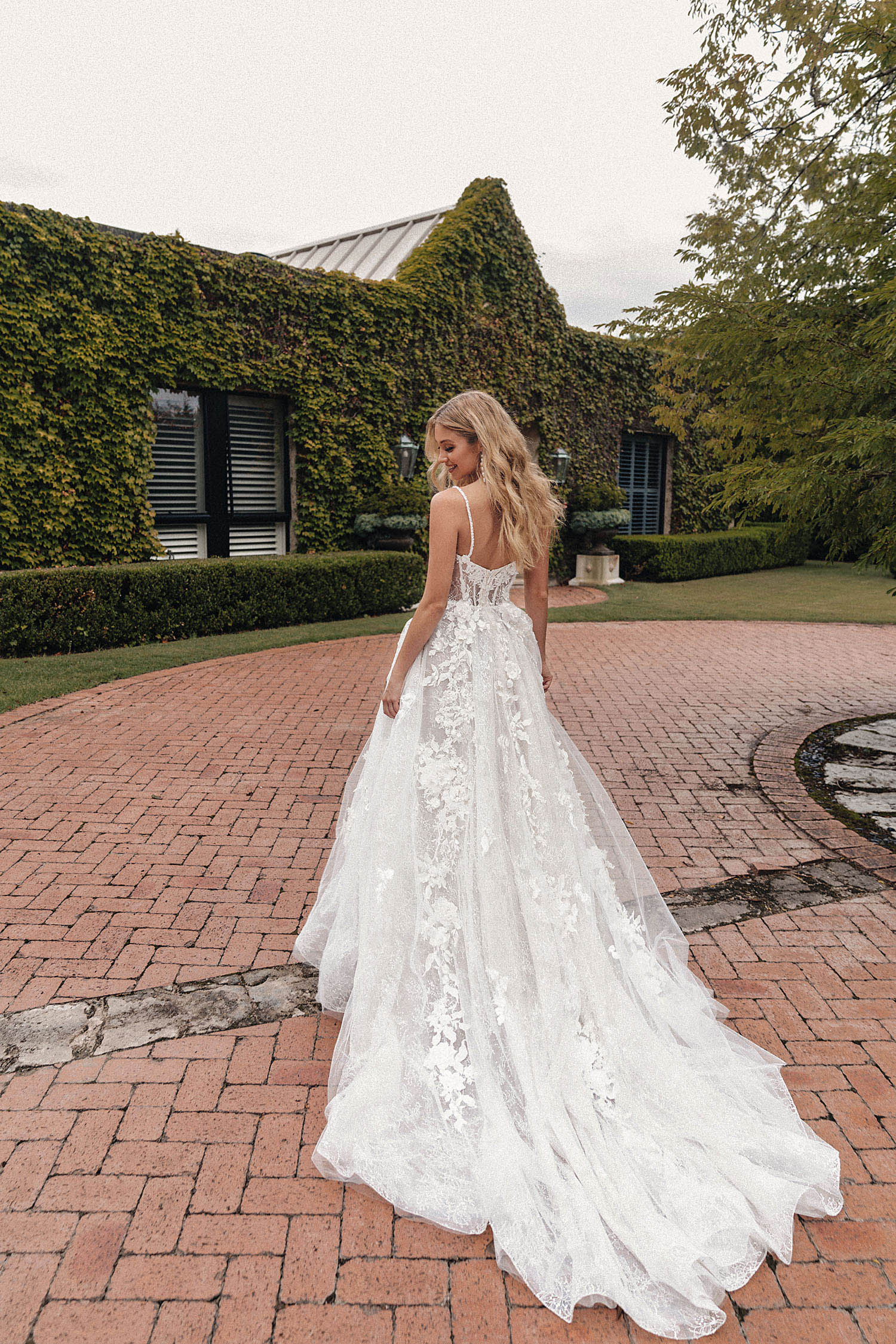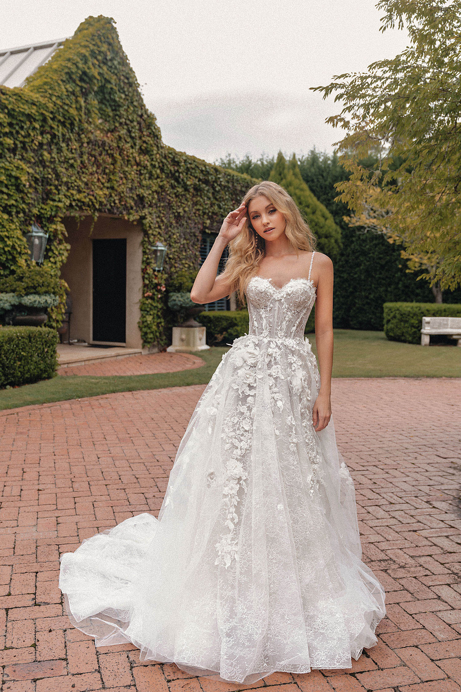 Istanbul is the best-selling dress in this collection. This spaghetti strap A-line gown is light and slightly transparent, featuring a long train. The detachable sleeves offer versatility, making it suitable for brides with varying preferences.